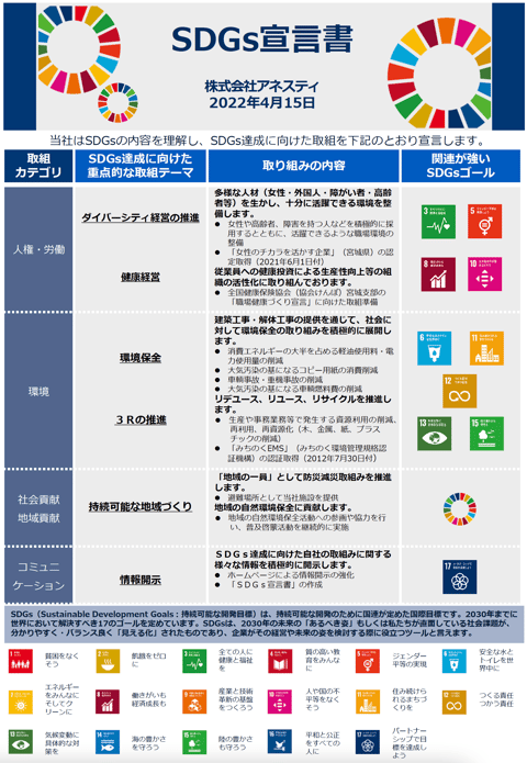 弊社はSDGsの達成に貢献していきます。
